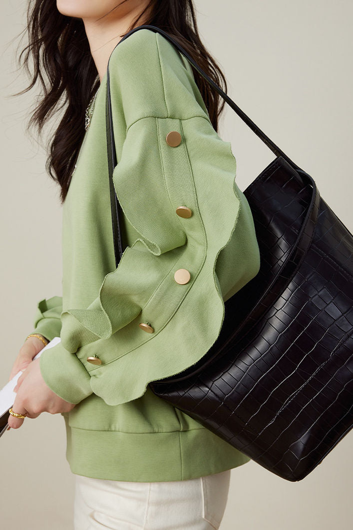Sweatshirt Décontracté avec Volants et Boutons Décoratifs
